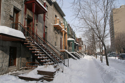 Монреаль преимущественно застроен 2-х, 3-х этажными такими вот домиками за исключением отдельных жилых высоток (типа нашей) и офисных и магазинных центров в "даунтауне".